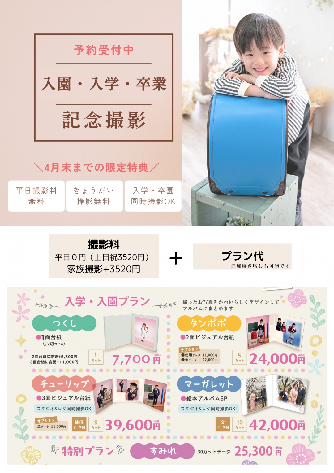 小学校卒業以上の撮影はこちらをご覧ください(別プランとなります)