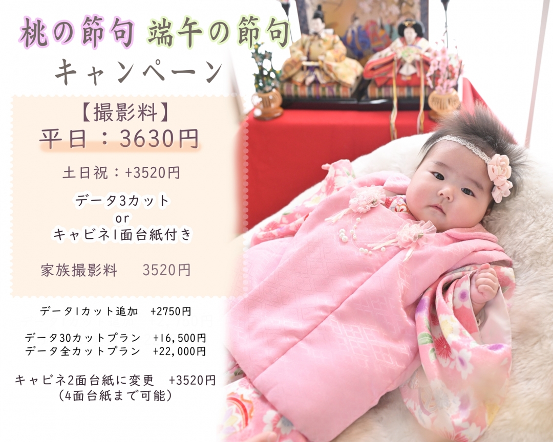 ※上記のキャンペーン価格は節句撮影のみの特別価格です。