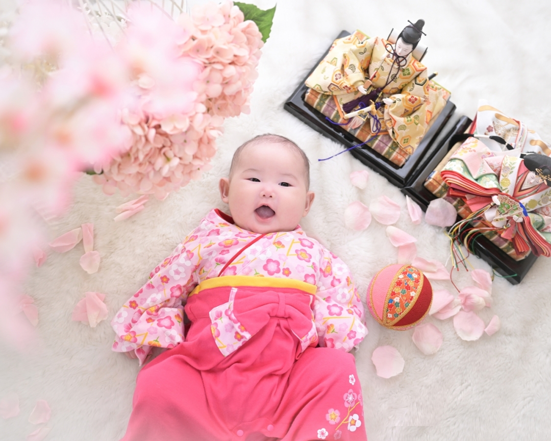 ご自宅に兜やお雛様がない方も、スタジオにご用意しておりますのでご希望の方はお気軽にご相談ください。