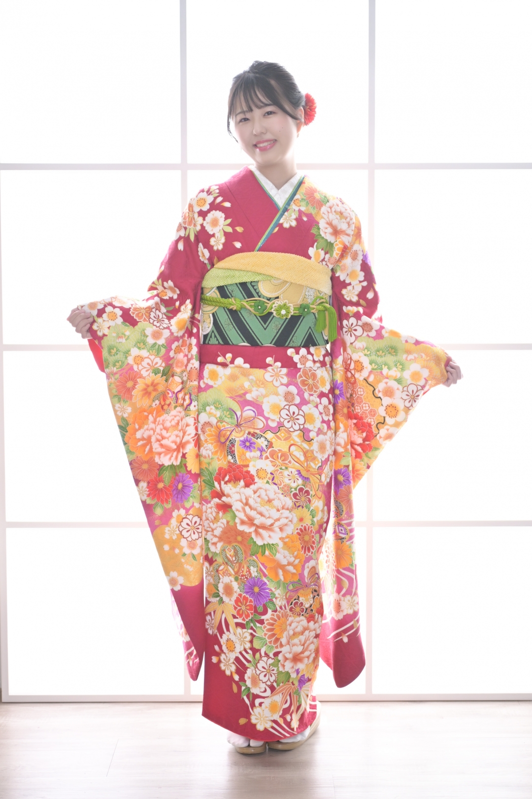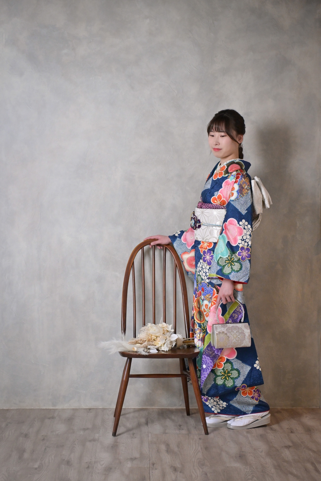着物の良さを引き出すかしこまったポーズから自然光のもとで笑顔あふれるカジュアルな姿まで撮影いたします。