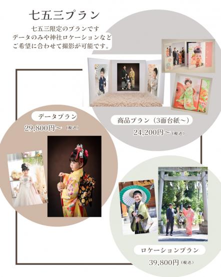 | 【データプラン】 | 【データプラン】 ◎着物1着 30カット 29,800円 50カット 35,300円 全カット 45,300円 全カットプランはポストカードプレゼント(6月まで) ◎着物1着と洋装1着 30カット 34,300円 50カット 39,800円 全カット 50,800円 全カットプランはポストカードプレゼント(6月まで) 主役1人追加毎に+11,000円 (+10カット) データはダウンロードお渡しです。 |